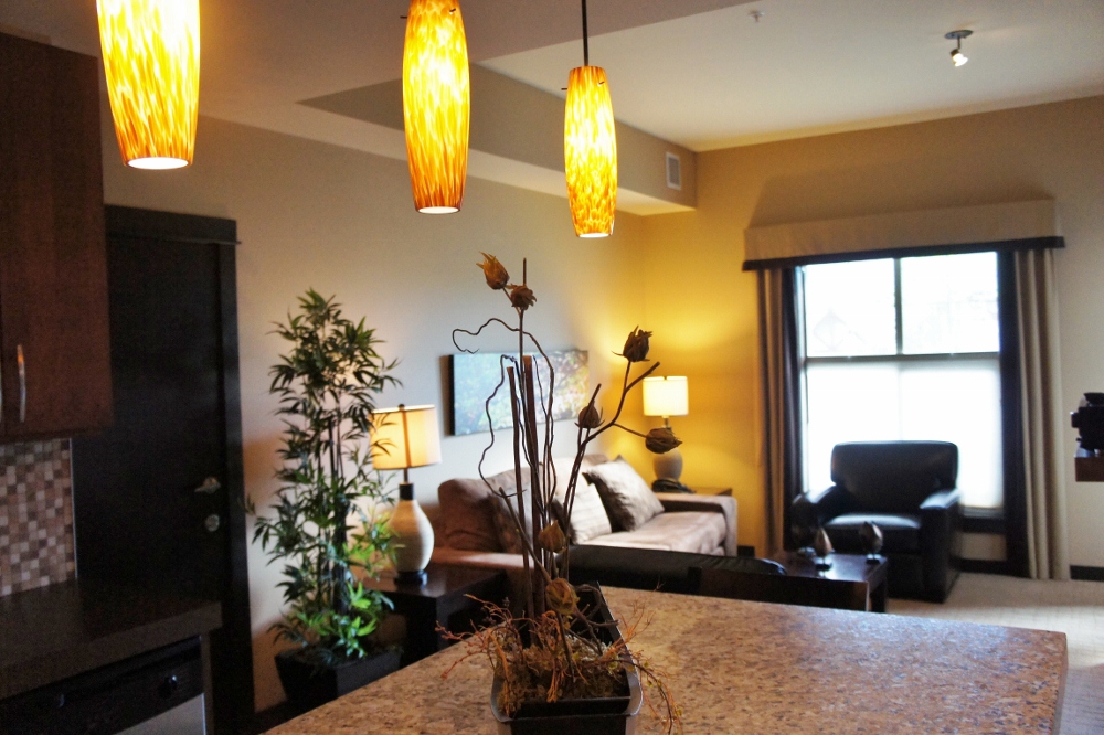 バンフはコンドタイプのホテルが少ないので、車で15分程離れた場所にあるケンモアに宿をとりました。円高のときに予約したので、コンドタイプの1ベッドルームで1泊1万円ちょっとでとれました。建って4年程しか建っていないので施設は新しく、インテリアはモダンでいい雰囲気。キッチンも洗濯&乾燥機もきっちり毎日使い、快適そのものの滞在になりました。レンタカー派に強力推薦したいホテルです!