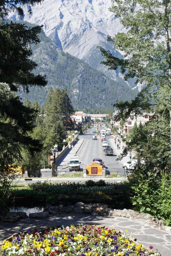バンフの町が紹介されたパンフなどでよく見る光景は、ここからバンフの町を撮ったものです。なるほど、絵になる光景です!前回訪れたときは気付かなかった裏に広がる見事なガーデンを今回は散歩してみました!様々な花々が植えられ、みなさんゆっくりくつろぎながらガーデンを堪能されていました。このガーデンが無料開放されているなんて、太っ腹ですね...。