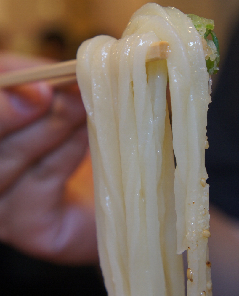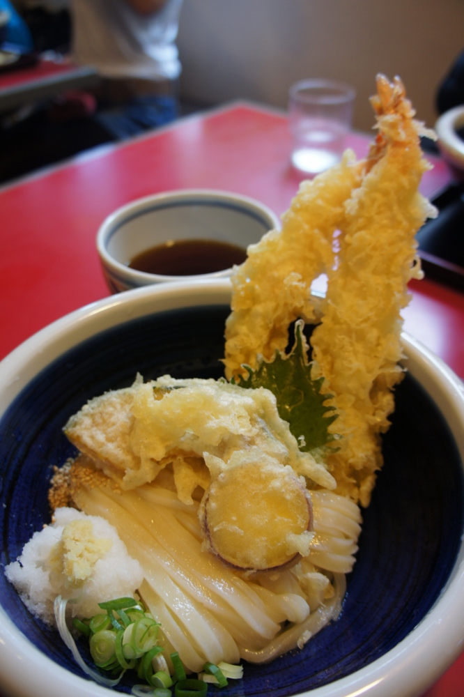 オープン40分前程に到着すると、すでに1組待っていました。炎天下ではありますが、行列の10人目位まではイスと日除けがあるので、まだ楽に待つことができます。お店自慢の「ひや天おろし」をオーダー。透明感のあるつやつやうどんの上に大きなえび天2つ、野菜天いくつかが載って登場しました。おうどんは、コシとのびが最高で、もちろん最高!天ぷらも素材の良さがわかる上質のものでした。またぜひリピしたいお店です。