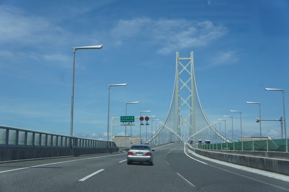 明石海峡大橋を利用しました!往路は残念ながら曇天だったため、淡路島側の景色は楽しめませんでしたが、復路は晴れたため、車窓のみごとな眺めを楽しみながら渡ることができました。神戸側の眺めも素晴らしいのでオススメです!横風がきつく、スピード規制が出ていましたので、ゆっくりと眺めを楽しみながら車を走らせることができました。