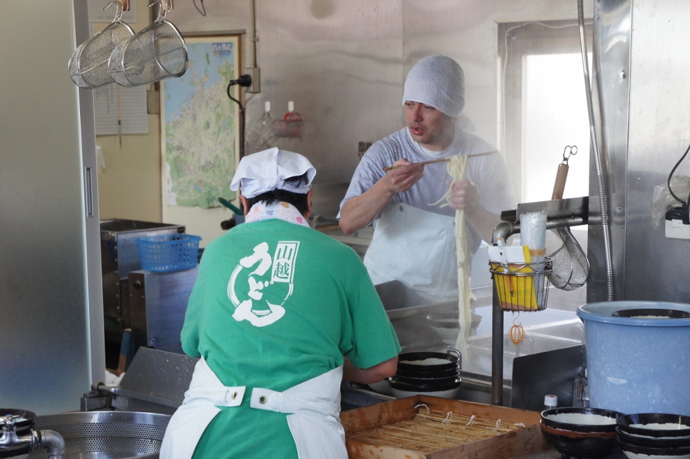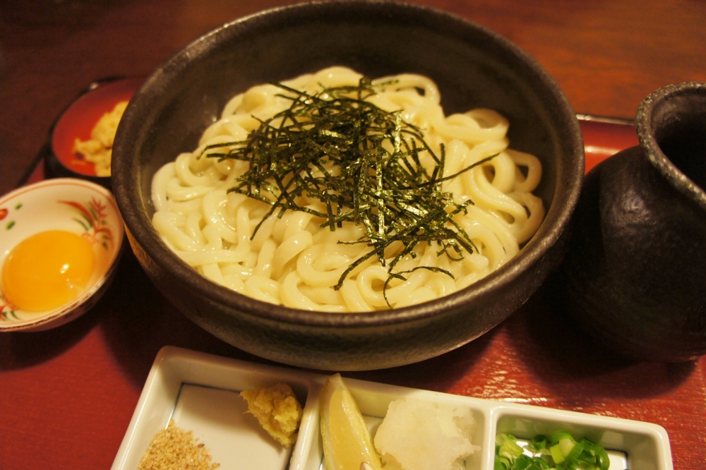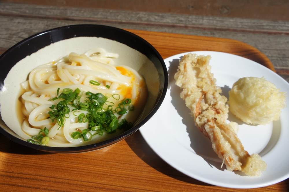 うどん巡りで巡った中で、1番立派な店舗のお店です。造り酒屋の古い日本家屋を店舗として使用していて、日本庭園の眺められる座敷の他、テーブル席もあります。主人は1番人気の「釜ぶっかけ」、私は「肉うどん」をいただきました。クチコミで高評価のお店だけあって、どちらもかなり美味!ぜひリピしたいお店です。ただし、かなりの人気店なので、行列覚悟で...。