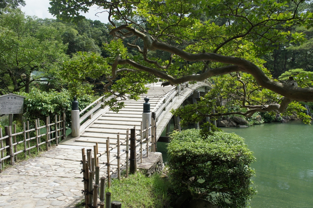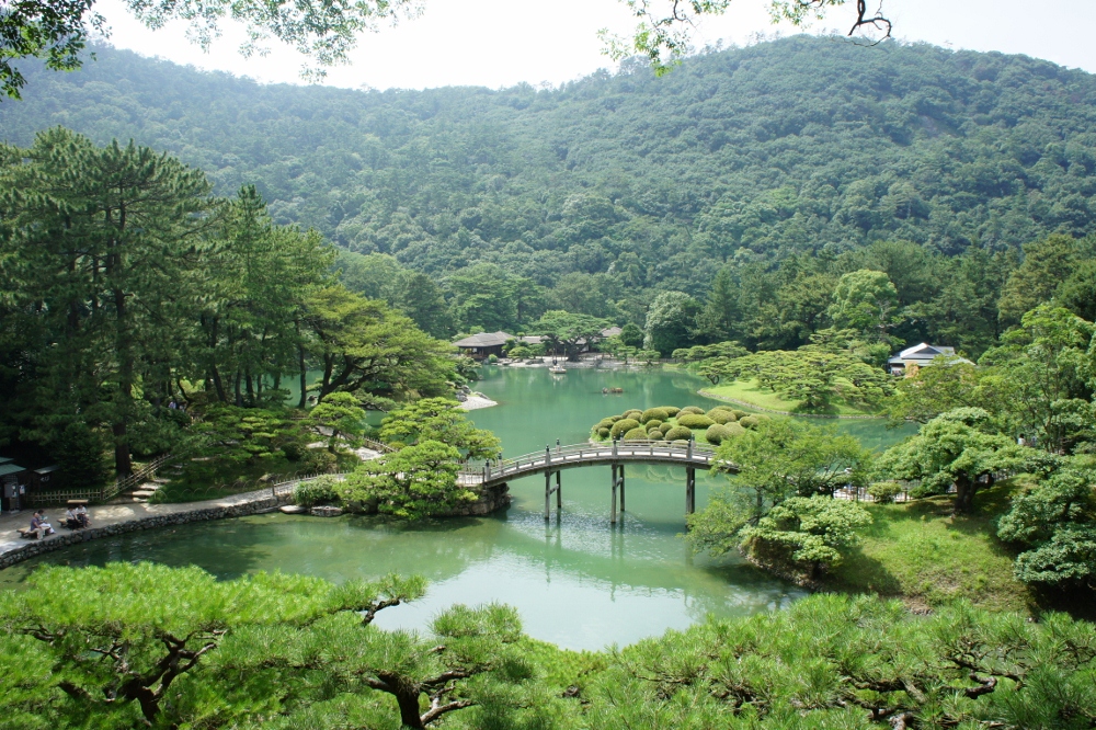 高松城の跡が今は公園として管理されています。お城は、櫓と石垣があるのみですが、奥に広がるお庭が見事で、散策にはピッタリです!月見櫓は、実際に上ることができ、瀬戸内海の見事な景色が一望できます。ここのお堀には海水が入れられているので、タイに餌やリをすることができるとか...。「鯛願成就」と名付けられています。