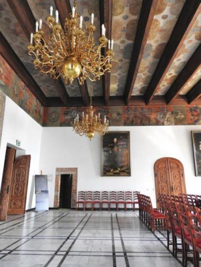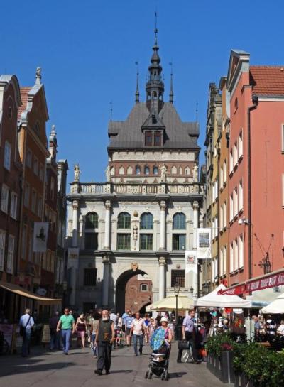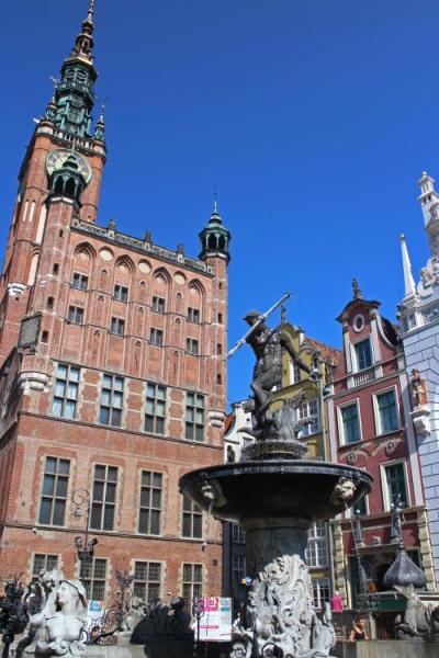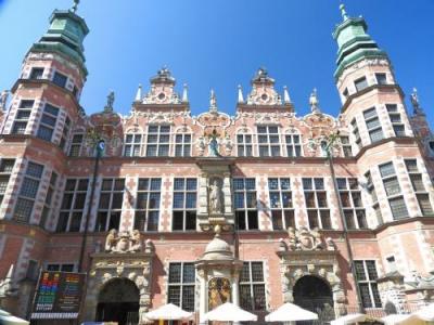 グダニスク旧市街を散策する際、目印になるのが、ちょうど旧市街の中心部に位置する『市庁舎』です。1379年着工の旧市庁舎は、グダンスクの富とこの町のヨーロッパにおける地位を顕示するものだったようですが、残念ながら戦争により壊滅状態になったことが市庁舎の中の写真に残されていました。その後、ポーランドの人たちによってキレイに復元され今に至っています。レンガ造りの美しい建物は、とてもキレイで、街のランドマークと呼ぶにふさわしい建物です。