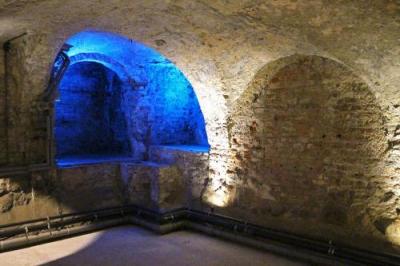 『市庁舎』の中にある『歴史博物館』へ行って来ました!装飾が独特で、印象深いホールや優美な装飾のれせん階段を見学した後、この博物館のメインとも言うべき『赤の広間』へ!これが、まあすごいデコラティブなお部屋で、天井には額縁みたいな絵画と細工がぎっしり!!!とにかく、盛って盛って盛りまくれ~って感じのお部屋でした。歴史博物館は、上に上にと階を上がっていくよう見学ルートが組まれていて、最後は、一気に地下まで降りることになります。地下には、戦争中、武器などの貯蔵施設があったようで、こんな感じでいくつもの部屋に分かれています。他の部屋はむし暑かったのに、なんだか防空壕の中みたいで、ここだけひんやりしていて、ちょっと怖かったです。