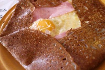 モンパルナス通りにある、通称「クレープ屋通り」へ行きました。午後2時過ぎとあって、お昼の営業が終了したお店も多い中、開いていた『CREPERIE PLOUGASTEL』へ!イチゴの可愛い看板が目印です。お店の中も、ブルターニュ地方のインテリアで、なかなかいい雰囲気です。主人は、牛ミンチとトマトのガレット、私は、王道のチーズ、ハム、卵のガレットを頂きましたが、とても風味豊かで美味しかったです!