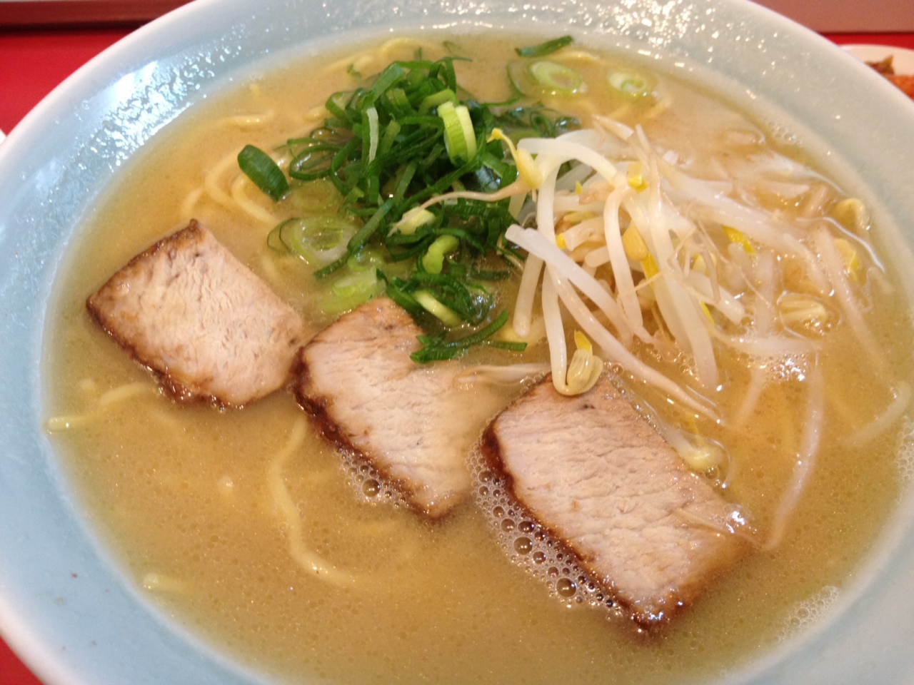 最近は、とんこつの本場博多でもあっさりとんこつが人気ですが、ここには昔ながらのこってりとんこつでした!とんこつには細麺ストレートという思い込みが見事に裏切られ、中太のちじれ麺!もちもち感がありおいしかったです。ただ、スープの表面に塩コショウを振るためかなり濃い目の味付けに...。食べ始めはちょうど良いと思った塩加減でしたが、最後にはしょっぱさが残ってしまいました。