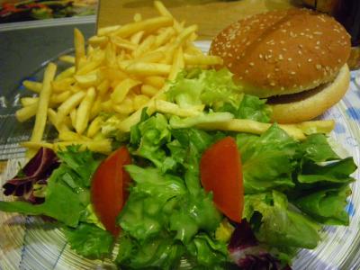 ブリュッセル行きの最終タリスに乗るためパリ北駅を利用した際、入ったカフェです。午後10時の閉店間際に飛び込みました!「オートグリル」という、イタリアのSAでお馴染みのチェーン店ですが、意外や意外、結構おいしかったです。閉店間際のせいかもしれませんが、サラダもポテトも山盛り!2人で1皿で十分OKでした。
