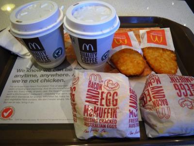 ゴールドコーストでコーヒーをオーダーすると、エスプレッソかカプチーノのどちらかになります...。メニューをじっと観察しましたが、いわゆるレギュラーコーヒー的なものはないみたいでした。メニュー構成も、アメリカとも日本ともちょっと違いました。所変われば...ってやつですね。- 旅行時期