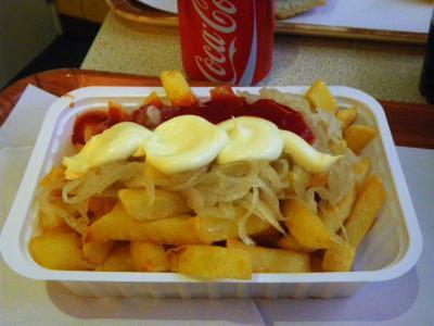 ベルギー最後の食事で選んだのは、ベルギーフリッツで有名なこのお店!ブリュッセル中央駅からグランプラスへ向う道の途中にあるお店です。私は、「ハウススペシャル」をオーダー。ベルギーフリッツに、炒めた玉ねぎとケチャップ&マヨネーズのせ。炒めた玉ねぎが甘くて、結構おいしかったんですが、さすがに量がハンパなくて、最後はリタイアしてしまいました。さすがにベルギー名物というだけあって、二度揚げされたポテトは、カリっとしていておいしいのでオススメです!