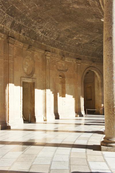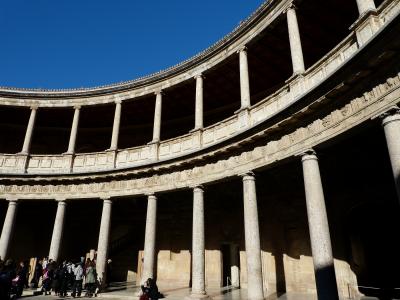カルロス5世宮殿は、16世紀に、キリスト教徒によって建設された宮殿。資金不足により、建築は未完のままだとか。確かに、凝りに凝ったイスラム建築を見た後に、ここへ来ると、「へ???」と思える程、違和感を感じます。スペイン人ガイドさんの中には、「これはアルハンブラの敷地にあるが、アルハンブラではない!」という方もいるそう。正方形の形をした建物の中心に、円形の中庭があるのが珍しい他は、特に魅力は感じられませんでした。