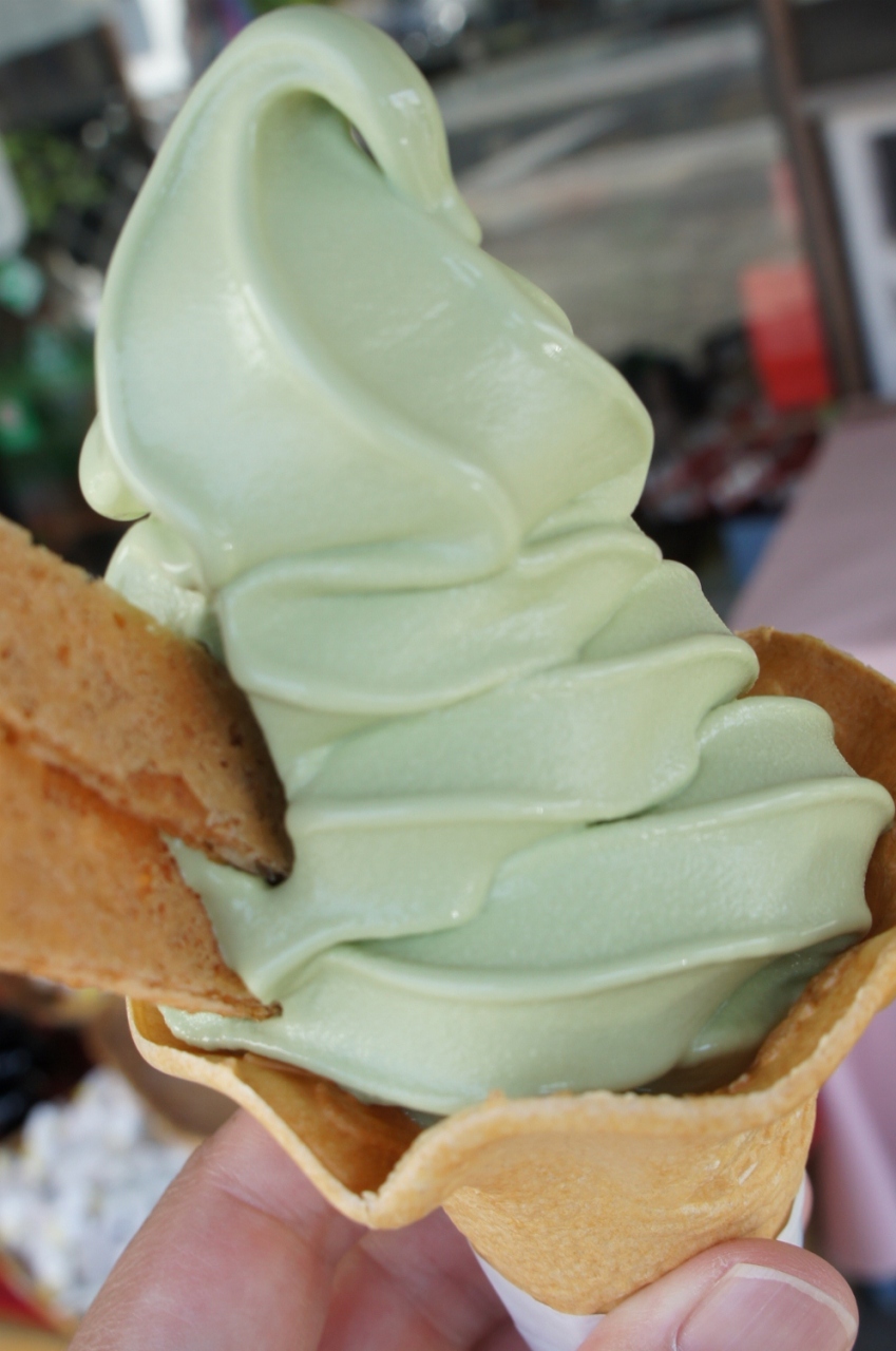 菊池温泉にある和菓子の名店。和菓子がメインのお店ですが、ここの抹茶ソフトクリームが人気と書いてあったので、食べに行って来ました。抹茶ソフトは、コーンの下までぎっしり入り、持つとどっしり...。かなりボリューミーで食べ応えがあります。抹茶の香り、ミルクの濃厚さ共にバランスが良く、評判どおりの美味しさでした。お茶とお菓子のサービスまでしていただきました!