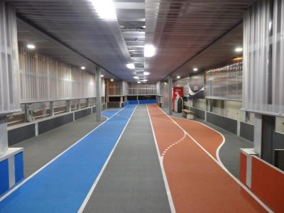 運動施設のようなラインを付けているが、終電間際の人たちがスーツケースを持ちながら走っており、まるでこれは煽っているよう