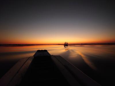 湖近くのホテルに泊まったので、ボートには何時に乗るべきか聞いてみると6時とのこと