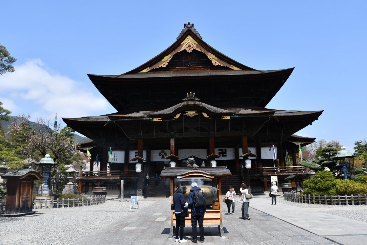 善光寺さんは珍しい御宗旨で、月替わりで天台宗と浄土宗が輪番になっているそうです。大きな伽藍で、堂内には三十以上の塔頭や宿坊があって宿泊体験もできます。門前にはお店が並んでいて、駅まで参道は一本道です。