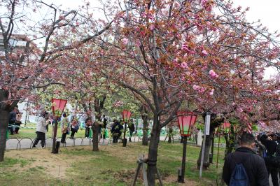 難波の春、桜の風物詩と言えば造幣局の通り抜けです。ほぼ、吉野桜が満開になった頃に通り抜けが始まります。八重桜を始めとして、紅手鞠や黄桜、楊貴妃というような珍しい種類が咲き誇ります。桜の花を愛でるのに、これほど多くの種類を一遍で見ることができるのは日本広しと雖も、ここだけだと思います。