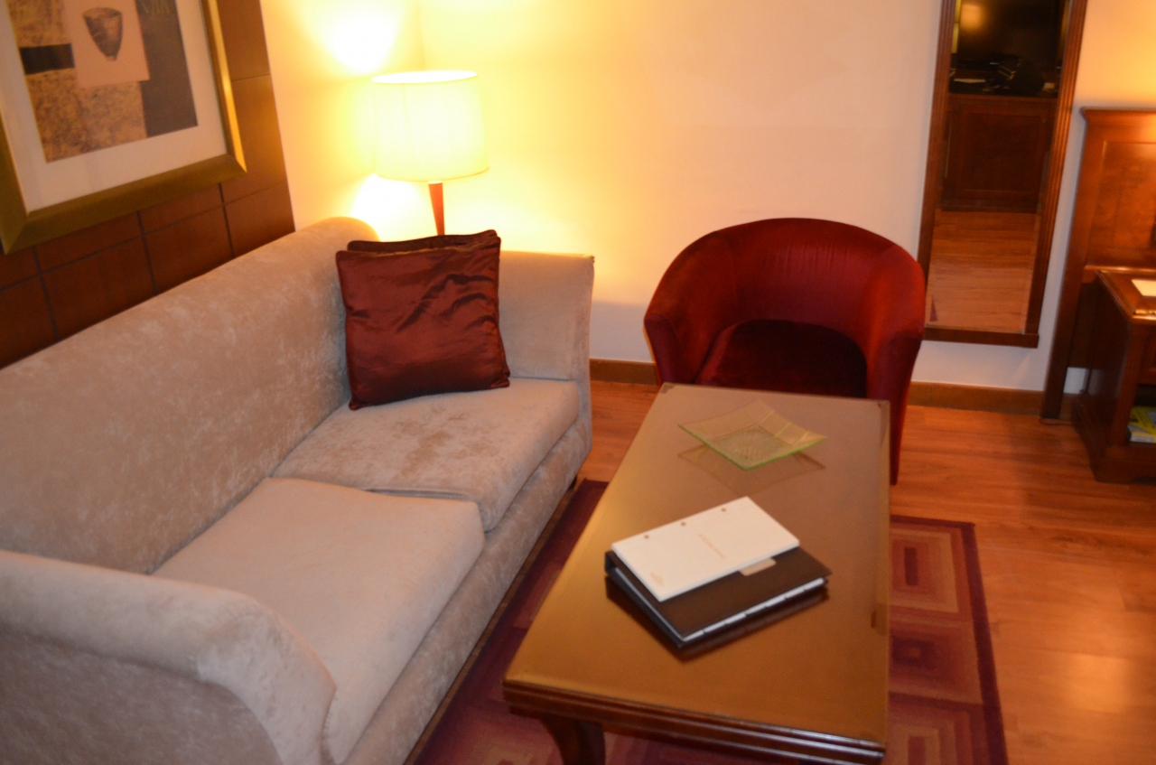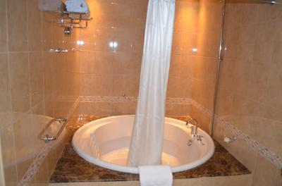地下鉄アルファヒーディ駅が最寄りで、一羽出口から歩いて六・七分です。二十一階からの眺望は抜群でした。東向きの部屋で、朝日もよく見えました。もう一つ驚いたのは、直径二メートルの円形浴槽です。お湯を張るのに一時間ぐらいかかりそうです。