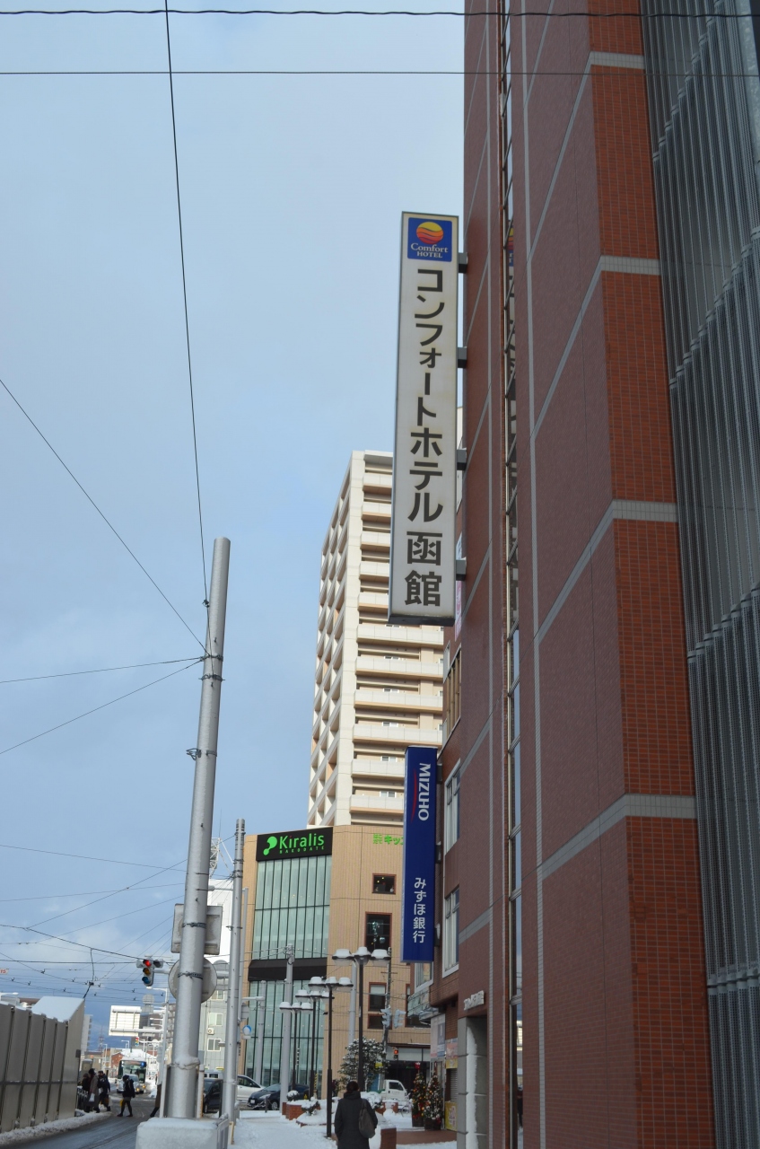 函館駅前で、分かり易い場所にあります。午後三時以降は、ロビーにある自動サーバーで珈琲を飲むことができます。部屋は十六平米ほどですが、ちょっと狭く感じられます。朝食はこの系列で全国共通だと思いますが、料理の酒類などは限られます。