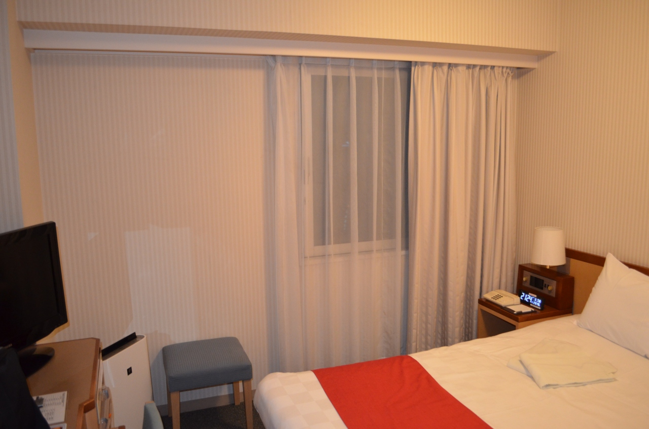 新千歳空港から半時間ちょっと、改札を出てから三十秒で入り口に行き着きます。六月十七日というのは市内で何かお祭りがあったようで、予約が立て込んでいました。部屋は広々として、十七平米以上はあるように思いました。内装も新しく、快適に過ごすことができました。