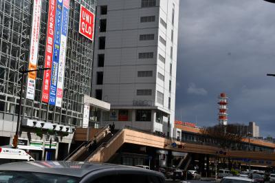 数年前から始まっている松山駅の改装工事は、線路の高架化も完了して二面四線の運用になっています。他方でまだ古い駅舎も残っており、新旧共存といったところです。改めて見渡してみても、この駅周辺にはお店などが少ないので、伊予鉄の市駅との差に驚きました。