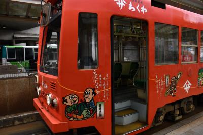 全国で路面電車が走る街は、今数えてみると十七ぐらいですが、そのうち新幹線の駅と直結しているのは六つでした。豊橋は、そのうちの一つです。観光案内所で尋ねて市役所前まで市電に乗って、吉田城跡を巡ってきました。石垣は修復工事中でした。
