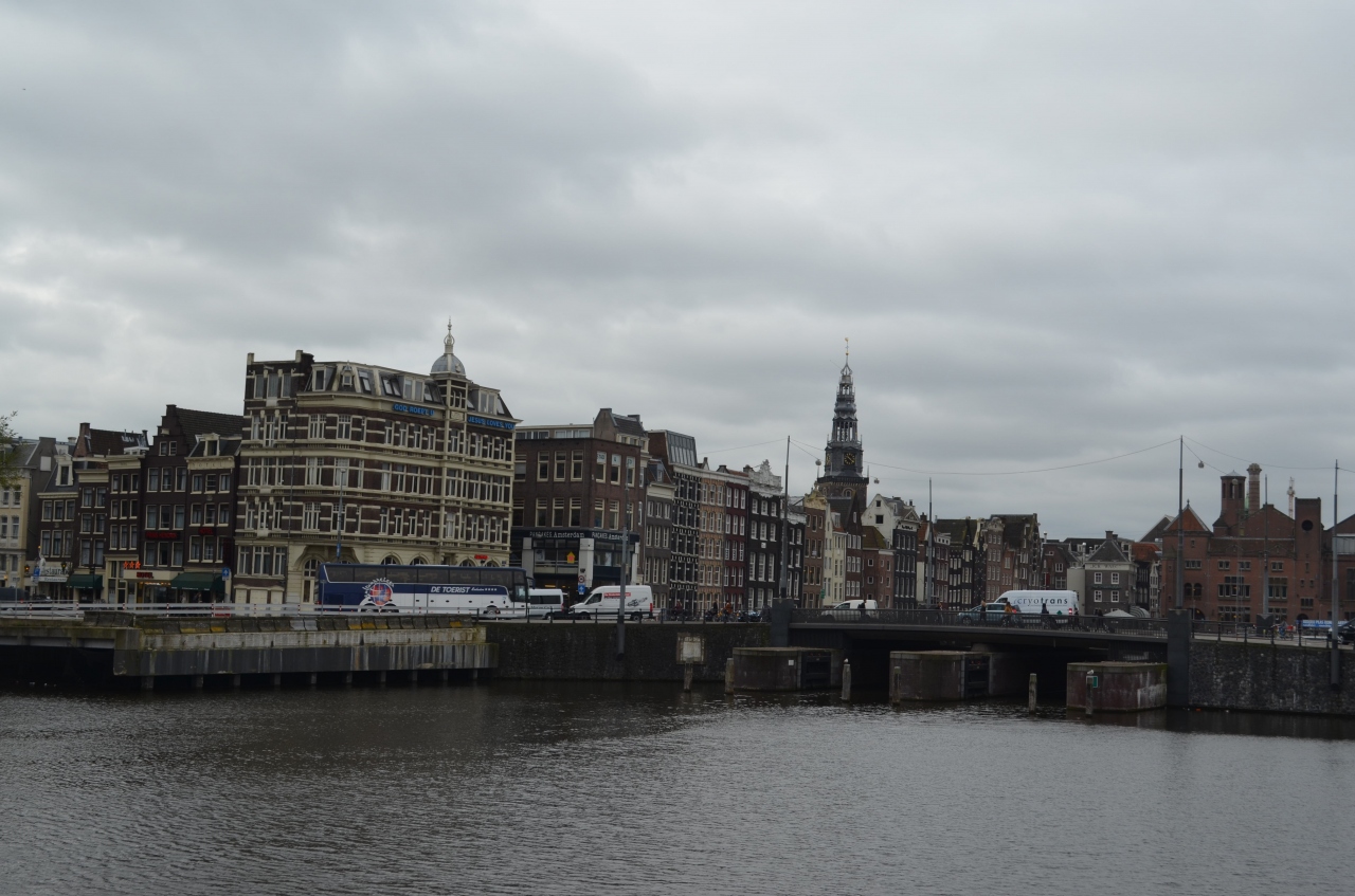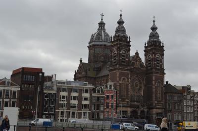 アムステルダム中央駅のすぐ近くに、旧教会があります。旧市街は運河が入り組んでいて高層建築がないためか、教会の尖塔が目立ちます。新教会と呼ばれる教会も近くにあります。中央駅からダム広場にかけて、いかにもオランダらしい風景です。