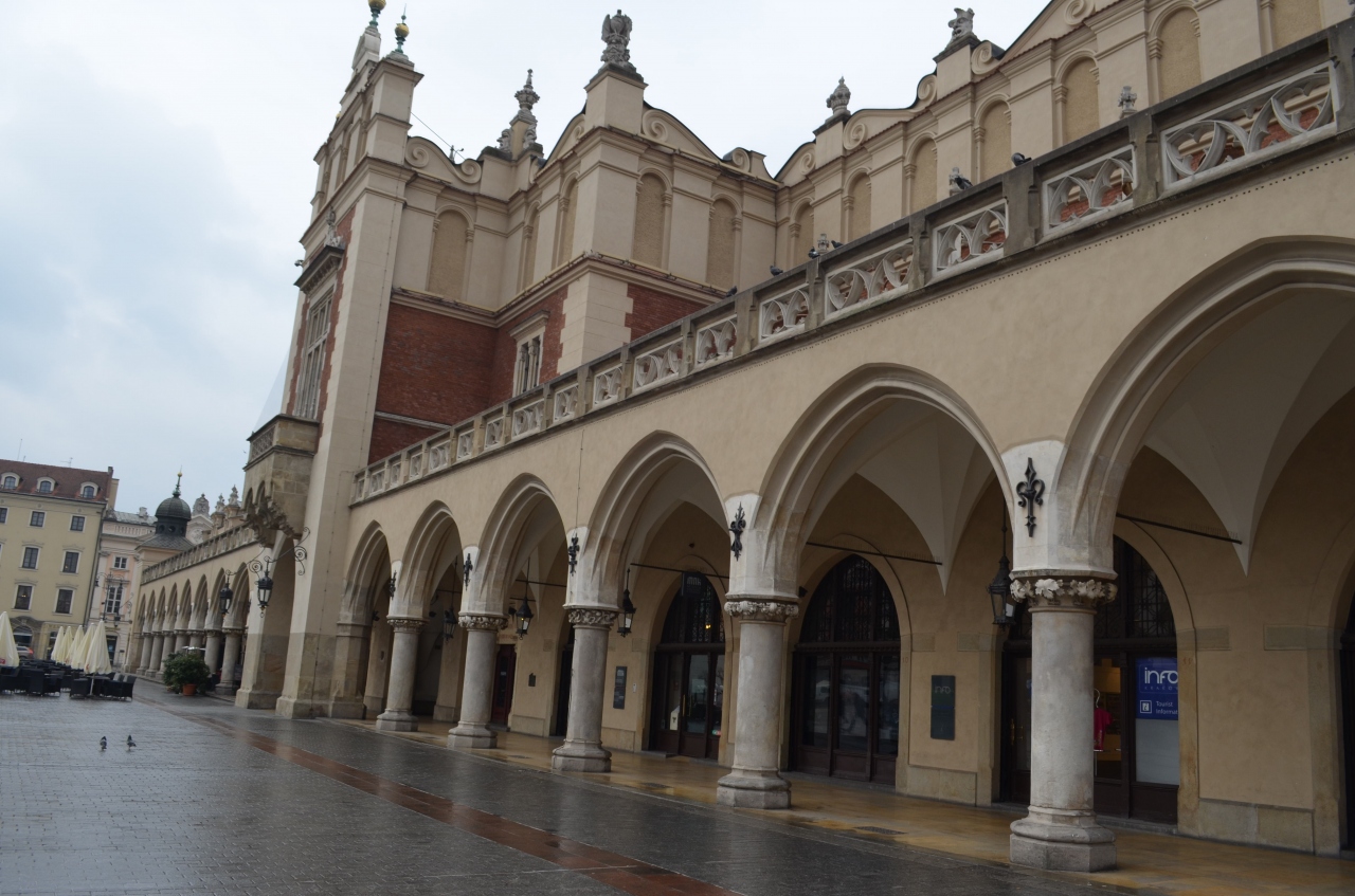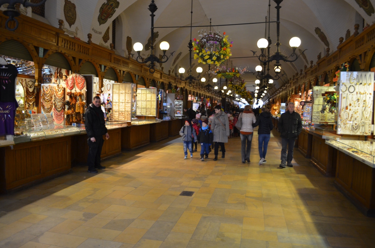 ポーランドの古都クラクフは、ワルシャワと異なり、ナチスの破壊を免れて中世の街並みがそのまま保存されています。織物会館は、その名の通り同業者組合の建物が今は商業施設になっています。内部は近代的で快適です。