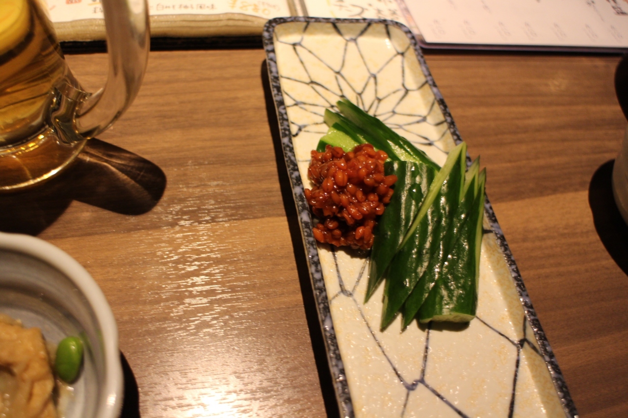 祇園四条界隈の居酒屋さんです。場所柄、周囲に飲食店は多いのですが、平均的なお店という印象でした。飲み物も食べ物も、一通り揃えてあります。日本酒の三種飲み比べというのを試してみました。大勢で飲食すると、こういう趣向が楽しいですね。