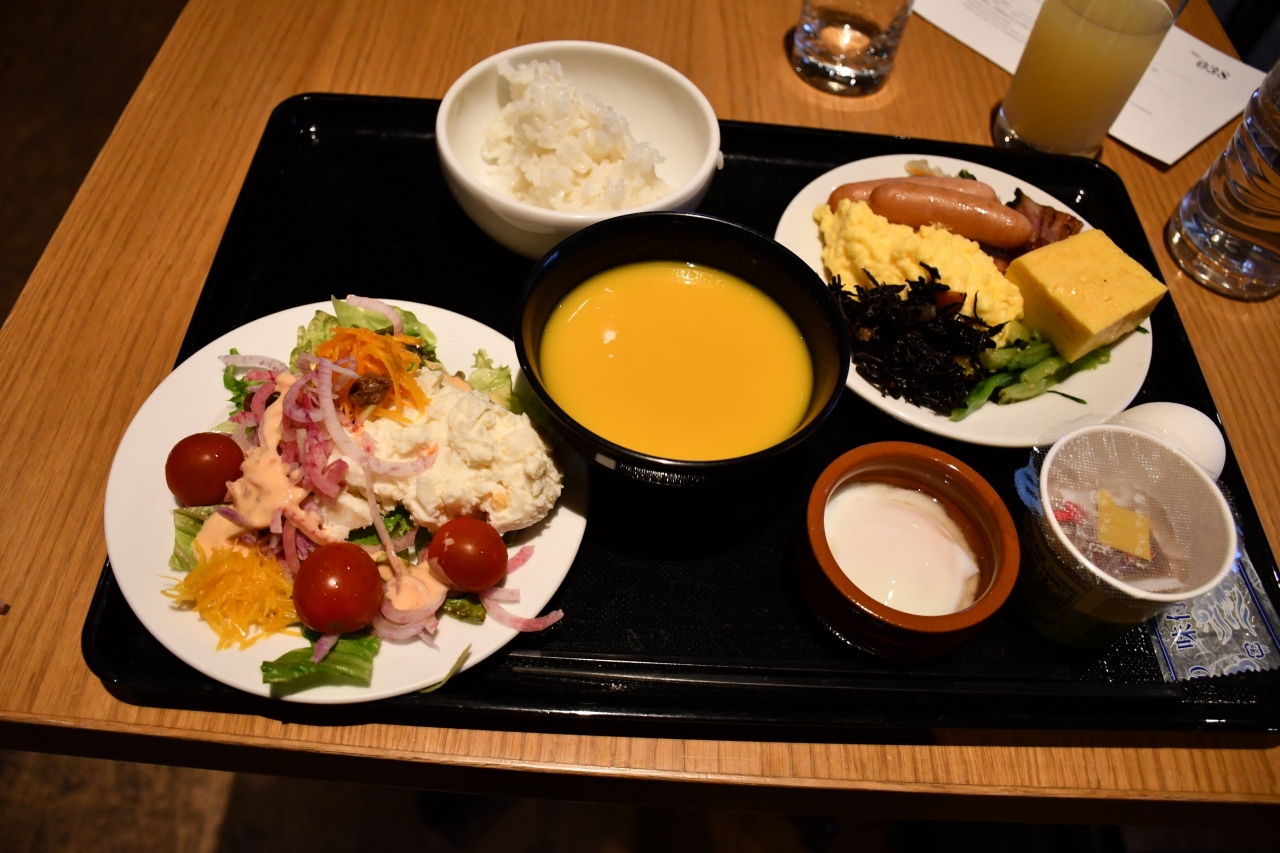 阪急阪神系列のお宿で朝ご膳をいただきました。同じお店で、夜はお酒も飲めるようです。主に宿泊客向けなので、入り口は分かりにくいかもしれません。ビュッフェ形式で、品数としてもまずまずでした。但し、お肉や魚類は少ないように思いました。
