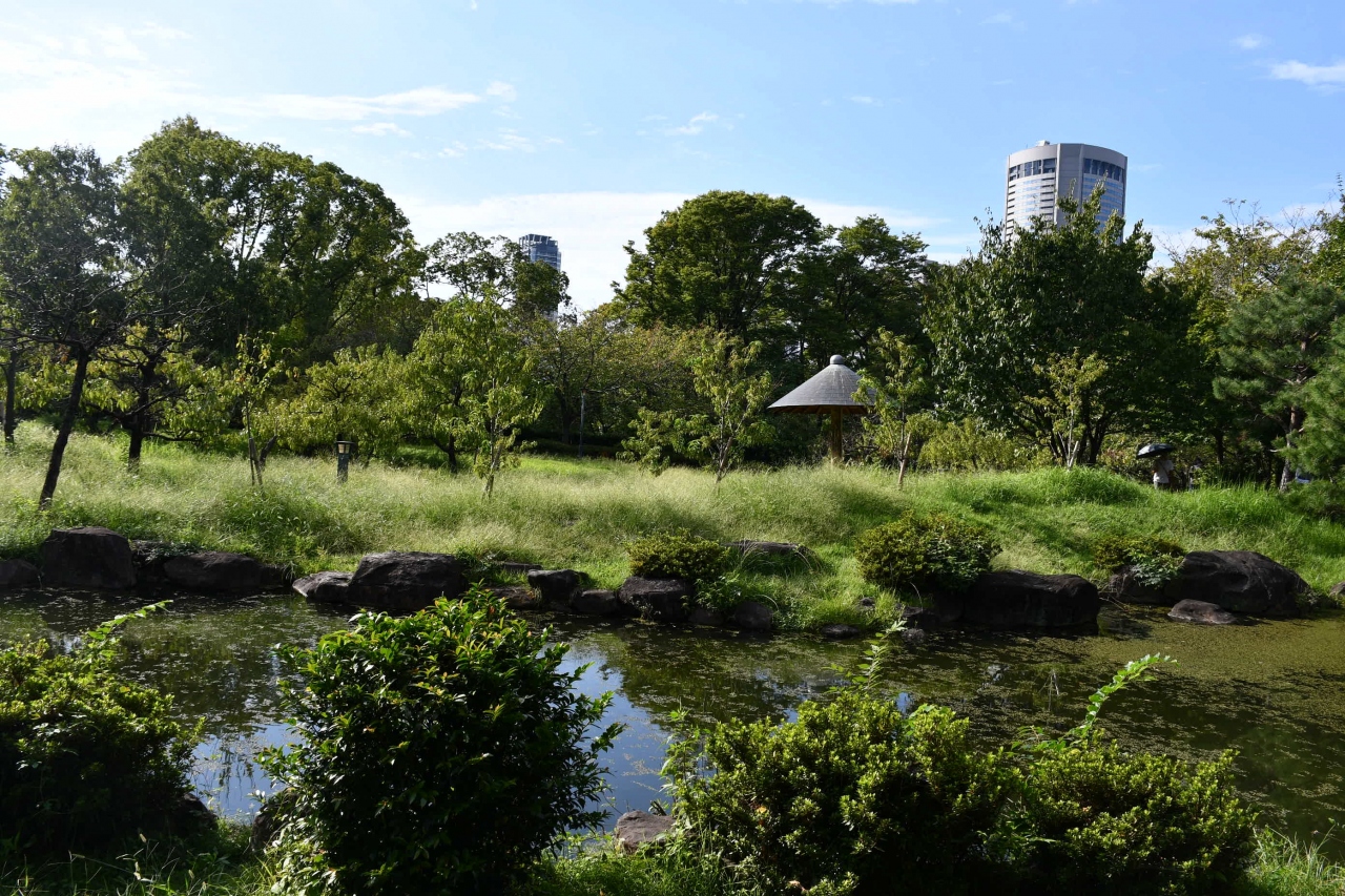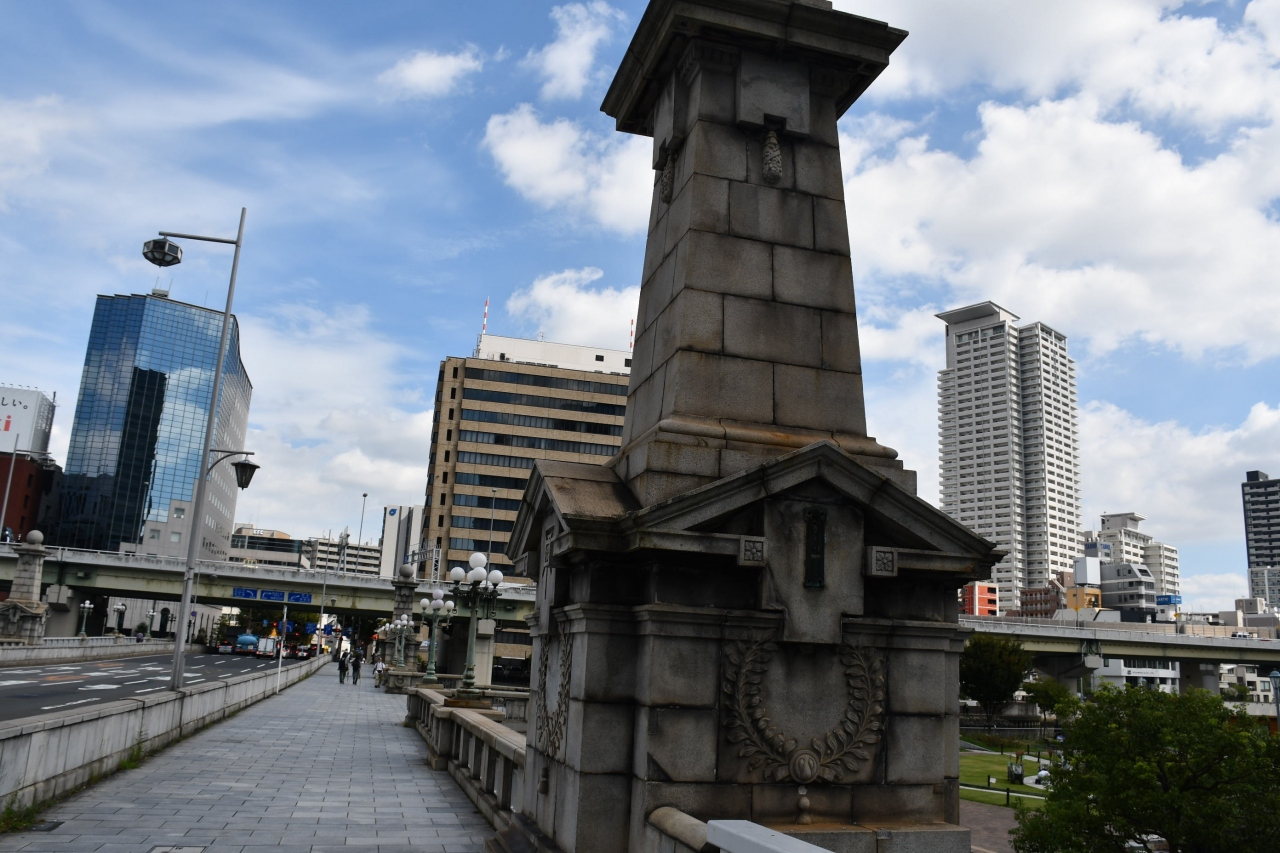 大川から分岐する土佐堀と堂島川に架かる名橋の一つが浪花橋です。夏の暑い時分は夕涼みで、天神祭には見物衆でごった返した名所でした。中之島は市役所、日銀支店、公会堂など歴史的建築が建ち並ぶ場所ですが、薔薇園などもあって市民憩いの散歩道でもあります。