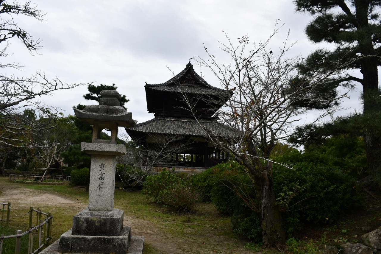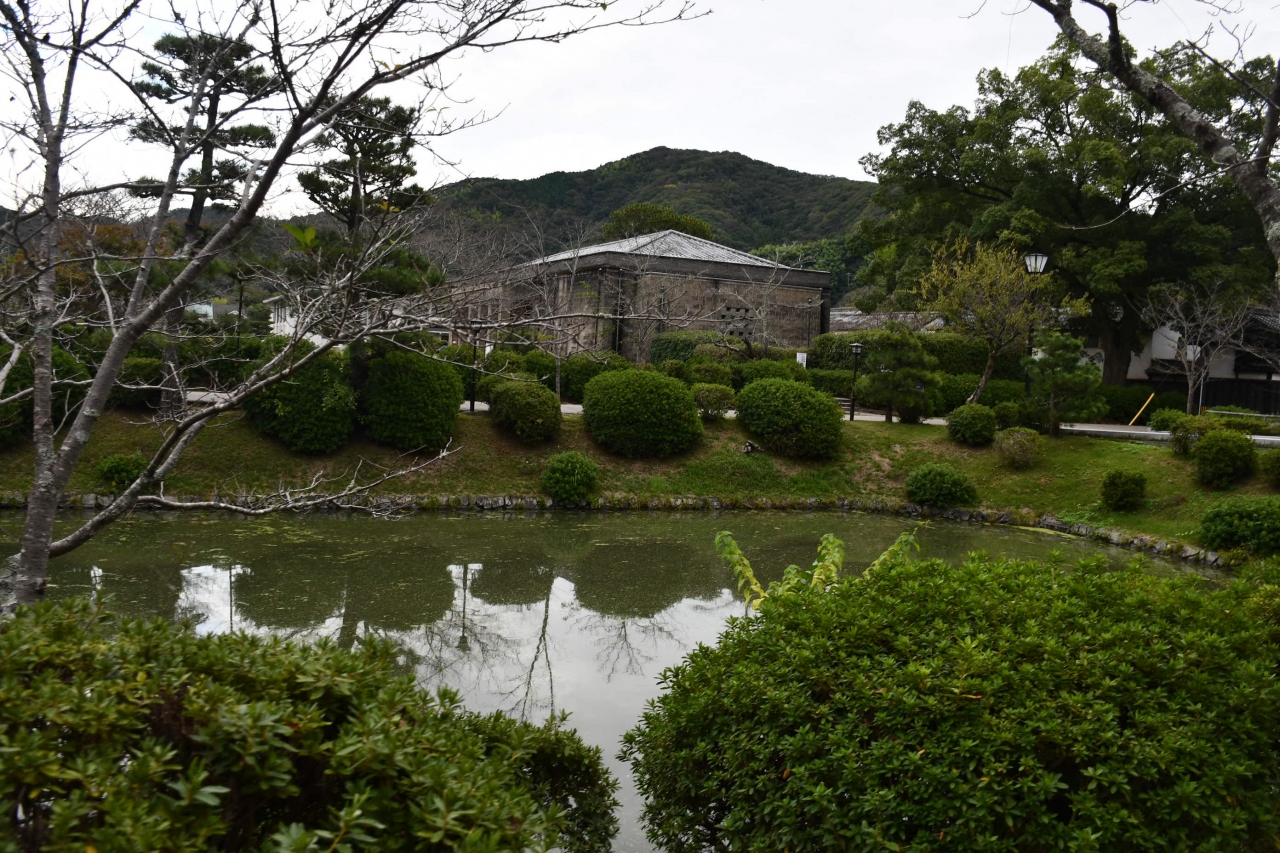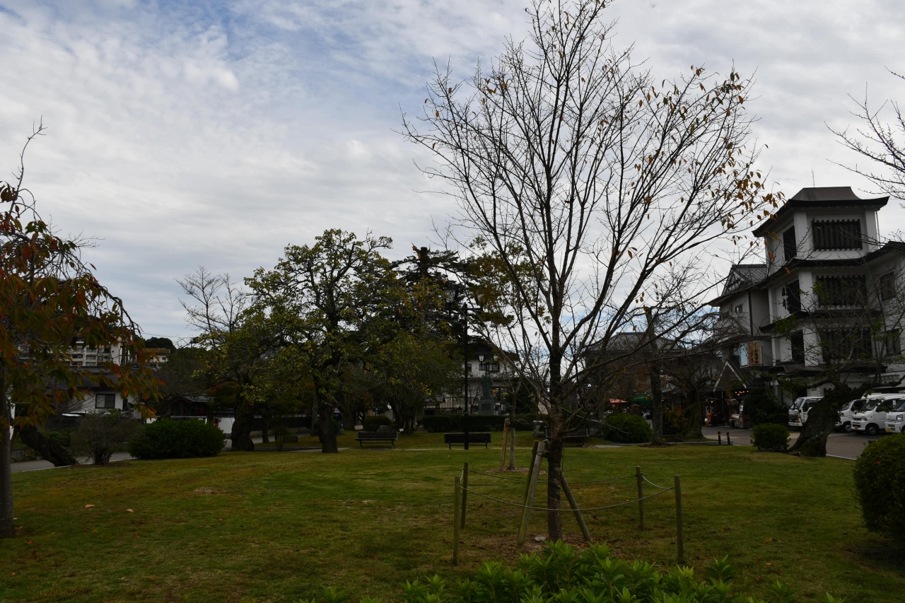 吉香神社の敷地内に、法隆寺金堂のような建物があります。二階建てで、威風堂々としています。お城の麓で、周囲は武家屋敷などもあって全体が広い公園という印象です。錦帯橋とお城は一体となって、見所が集まっています。