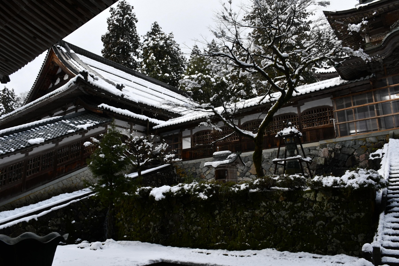 暖冬の今年は、滋賀県内区間の北陸自動車道は全く雪がない状態でした。二月十七日の夜から、福井県内では雪が降り出して、翌日にはちょっと積もっていました。永平寺さんにお詣りすると、流石にかなりの積雪でした。