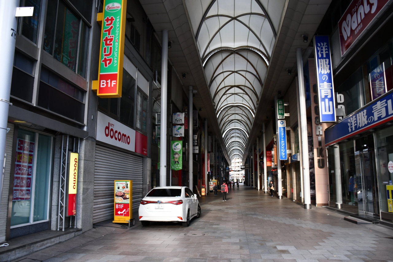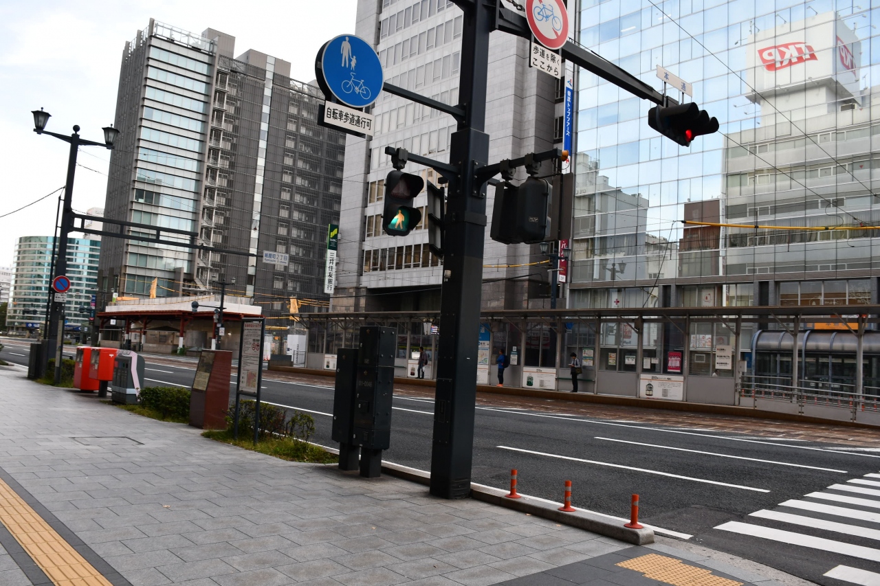 - 新交通の始終点駅、本通りから歩いて五分ちょっと、広島電鉄なら中国電力前停車場のすぐ近くです