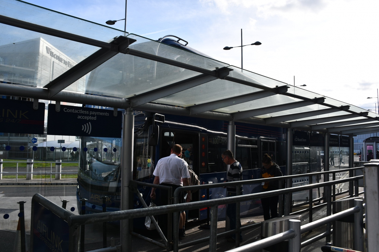 便利な空港行きのバスは百番、ウェイバリ駅の近くから出ています。王立アカデミーと国立美術館の間辺りです。運賃は片道四ポンド半ですが、現金でお釣りが出るや否やは分かりません。エディンバラ国際空港は市内から近いので、半時間ほどで到着します。