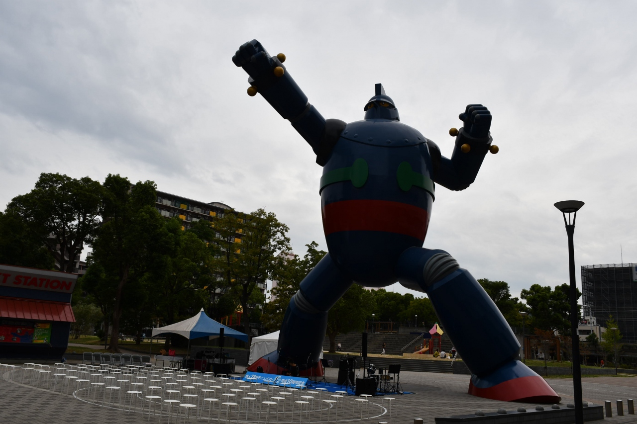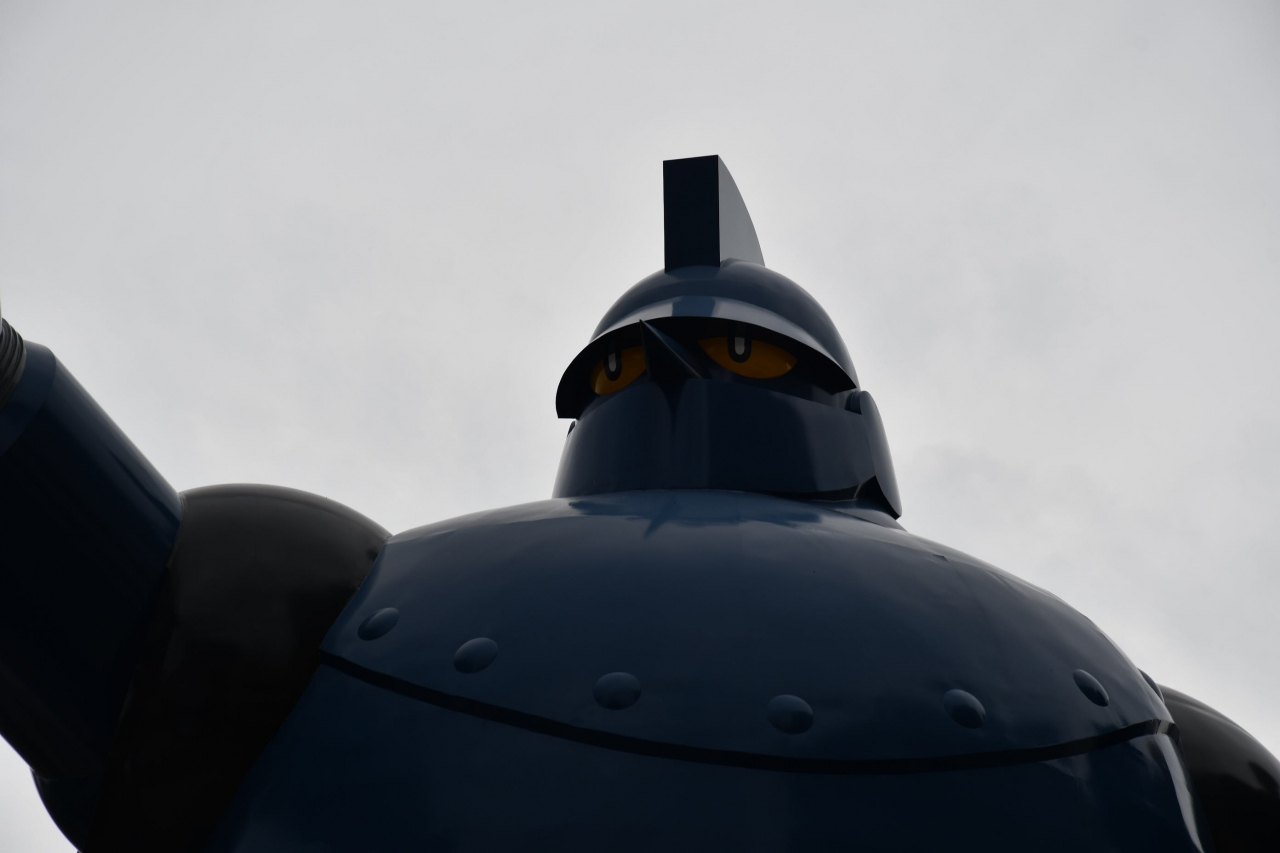 阪神淡路大震災からの復興を願って造られた、等身大の鉄人です。間近で見ると、大きいので迫力があります。曲線が多い造形なので、造るのが難しかったそうです。顔など、愛嬌があります。精巧な造りで、今にも動き出しそうです。