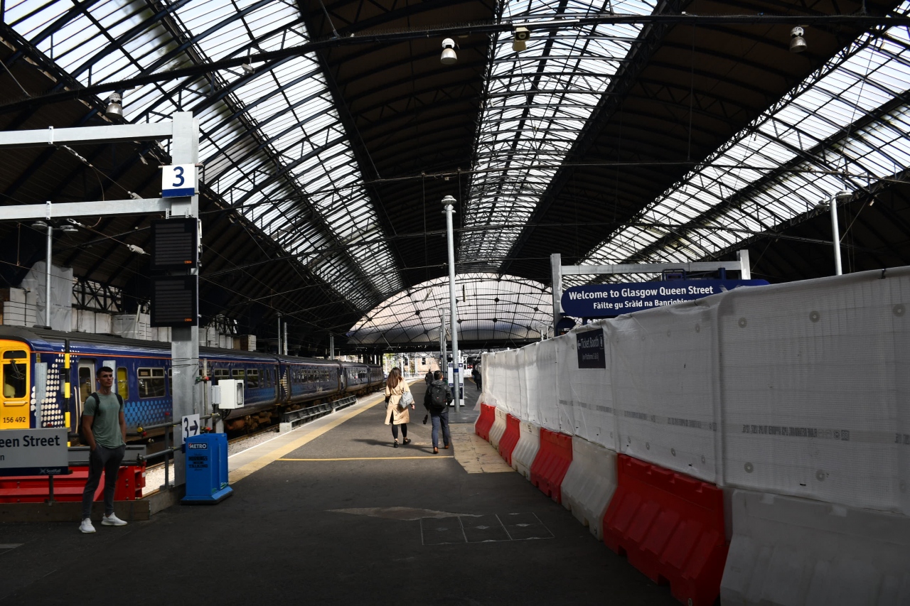 スコットランド随一の都会であるグラスゴーでは、その名も「中央駅」と、「クィーン・ストリート」という主要駅が二つあります。どちらの駅も地下鉄とは直結しておらず、駅間も離れています。クィーン・ストリート駅は改修中です。