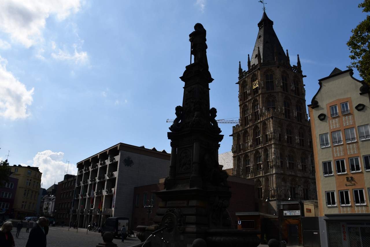大聖堂から歩いて五分か十分、ケルンの旧市街です。小さな広場を囲んで、市場があった場所です。今は、お土産物屋さんや飲食店が建ち並んでいます。規模にしても建物にしても、フランクフルトやミュンヘンなどの旧市街には及びません。