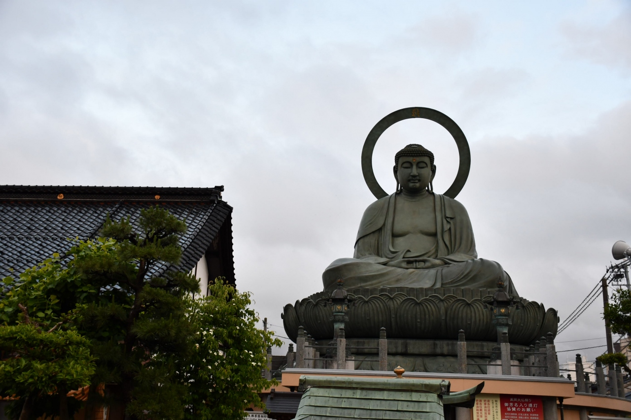 高岡駅から歩いて十分ほどです。万葉線の路面電車が伏木方面に向けて曲がる交差点の、少し先にあります。煉瓦造りの銀行支店、目立つ造りの御車山会館などが軒を連ねています。駅前から金屋町までの途中にありますから、帰りは公共交通機関を利用するとして、散策に好適でしょう。