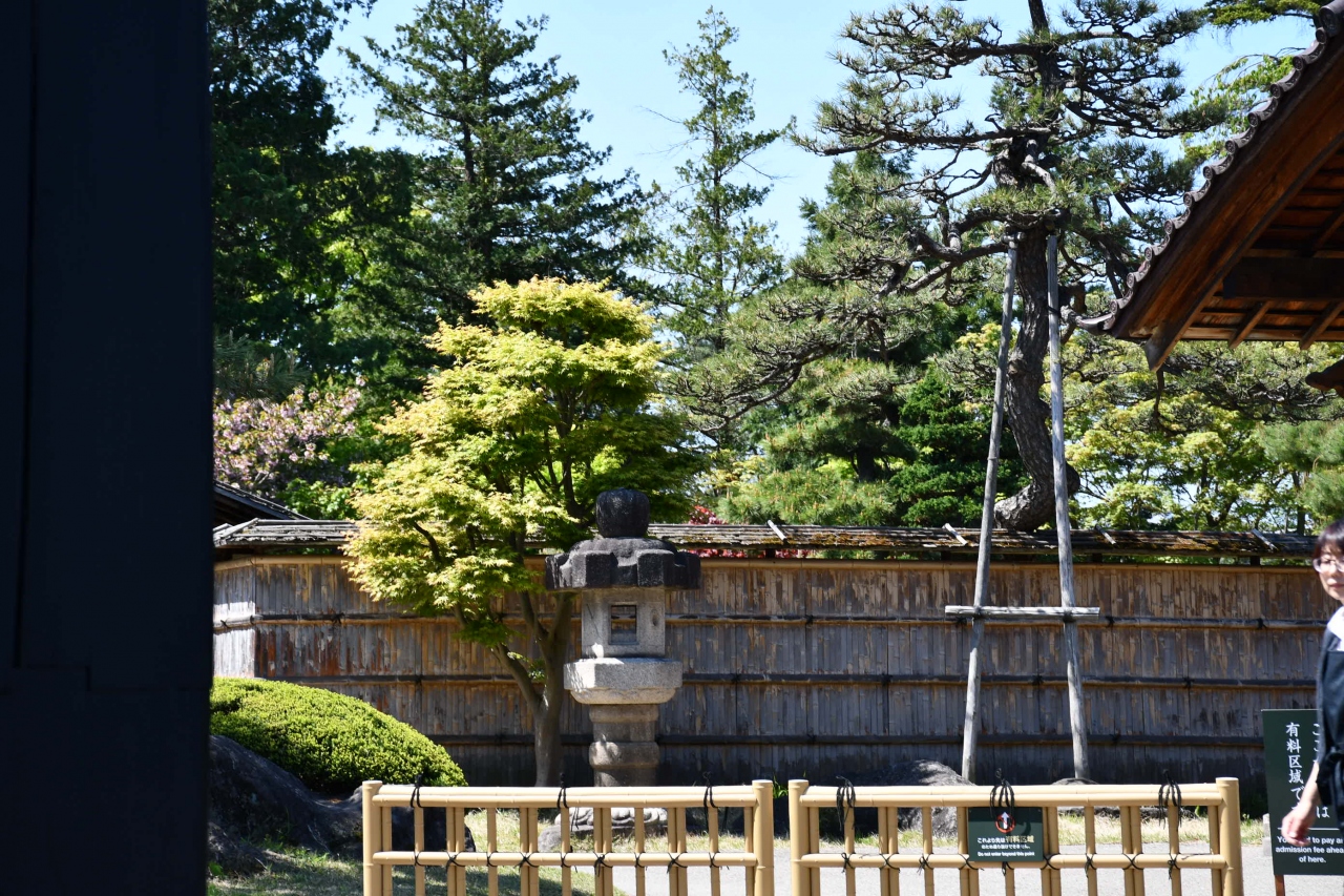 お城の東を守る御門です。皐月も半ばでしたが、城外では八重桜はまだ見頃でした。立派な天守閣を控えて、相応しい門構えです。門を入りますと、資料館やらお濠やら、見所が並んでおります。とにかく、このお城は見所が集まっております。