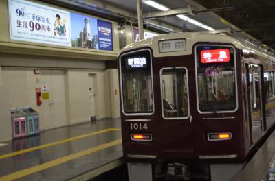 阪急電車の最主要駅、神戸線、宝塚線、京都線の始発終着駅です。お隣の大阪駅も大きいのですが、阪急梅田駅はわかりやすくできています。西側から順番に、神戸線、宝塚線、京都線と並んでいます。今では、各線の優等電車が十分間隔で揃うて発車します。