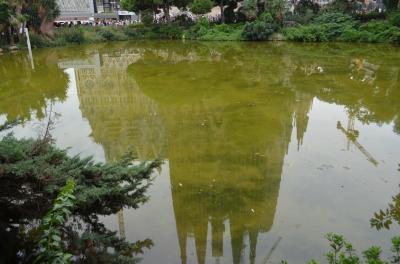 サグラダ・ファミリア大聖堂の正面に、池が広がっています。池には、水面に映る大聖堂の眺めも絶景です。場所は地下鉄駅の真上で、道に迷う気遣いもありません。いつも人混みで、座る長椅子もほぼ満席という状況ですが、名所には違いありません。