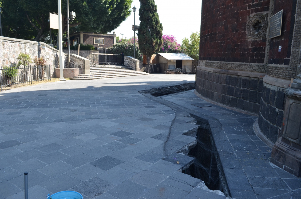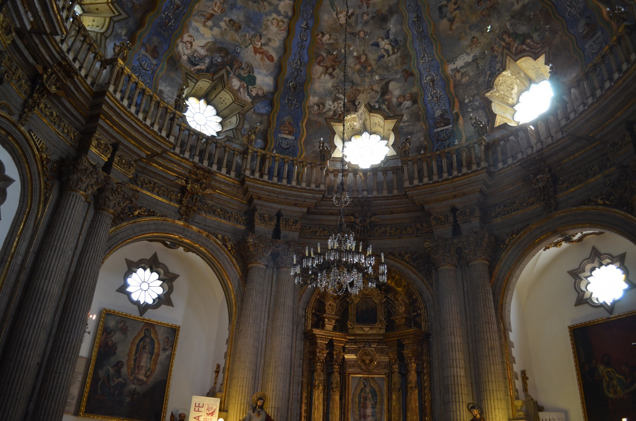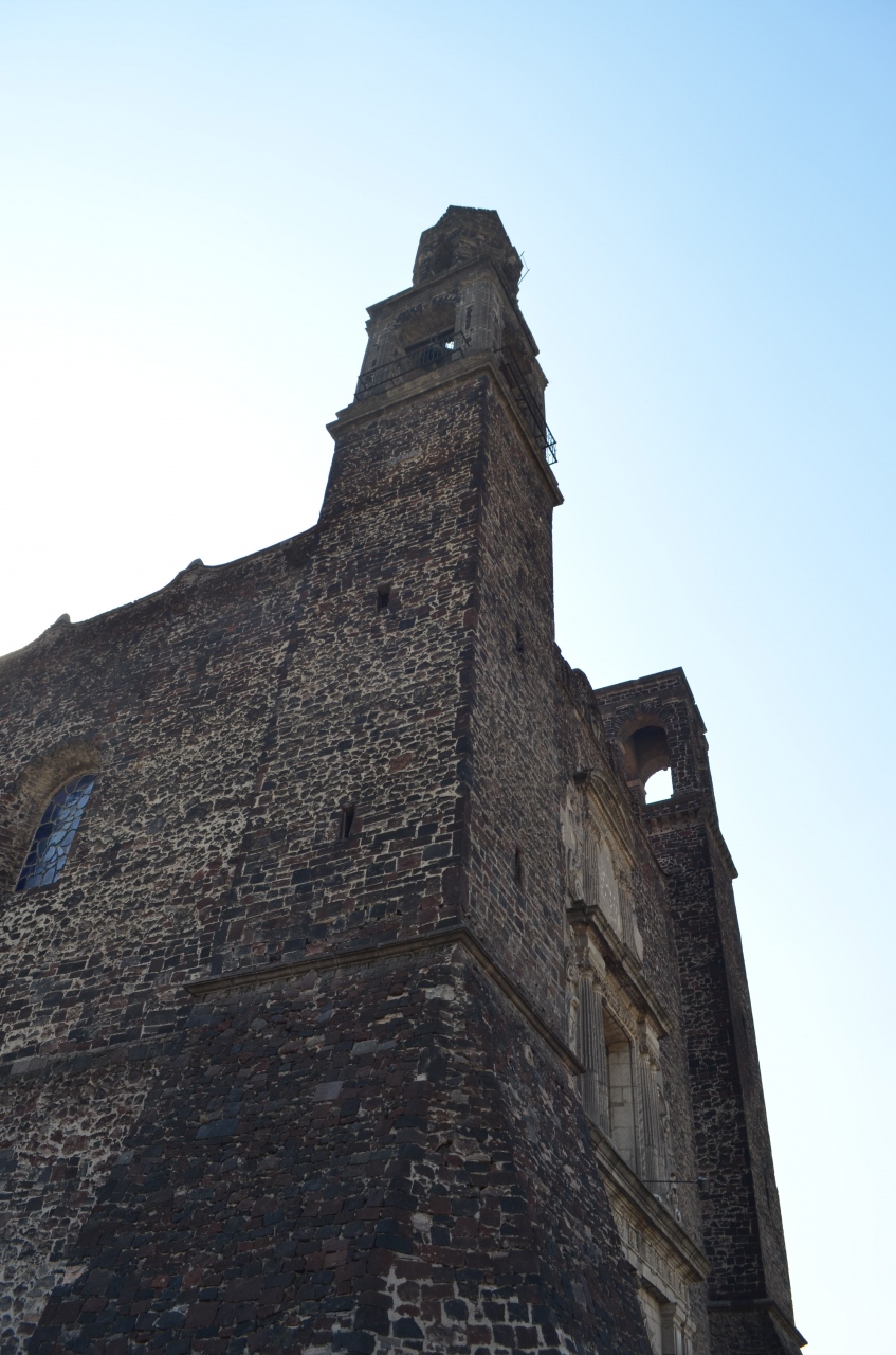 「三文化」というのは、古代メキシコ文明と近代キリスト教文化、現代(メキシコオリンピック)文明を指しているそうです。古代遺跡後は、青天井で展示されています。キリスト教会は、これまた歴史の重みを感じさせる建築でした。