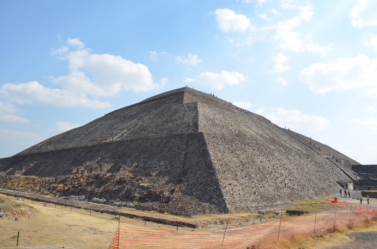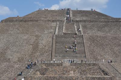 テオティワカン遺跡の中心的存在で、最も大きな建造物です。急な階段ですが、手摺りが付いているのでなんとか登ることができます。登り切ると壇上は広々としていて、眺めは抜群です。四方を見渡すことができて、壮大な気分になります。