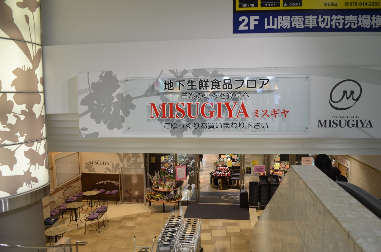 山陽電車明石駅のすぐ隣、エスカレータで降りていきます。この便利な場所に、意外な品揃えの葡萄酒が並んでいます。普段飲みの価格帯から超高級な部類まで、「なんでこんなんがあるんやろう」という一品も並んでいます。その他、食材も豊富です。
