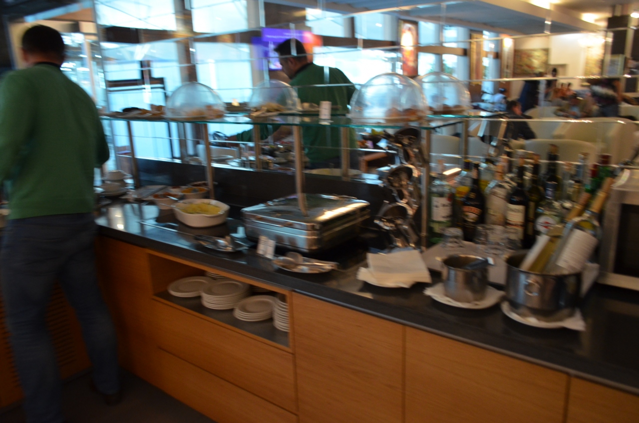 二十八番搭乗口付近にあり、広くて大人数に対応しています。ざっと見たところ、何百人も入れそうです。時間帯によって、その場で温かい麺類を盛りつけてくれることもあります。料理の酒類も多く、ついつい食べ過ぎてしまいます。