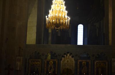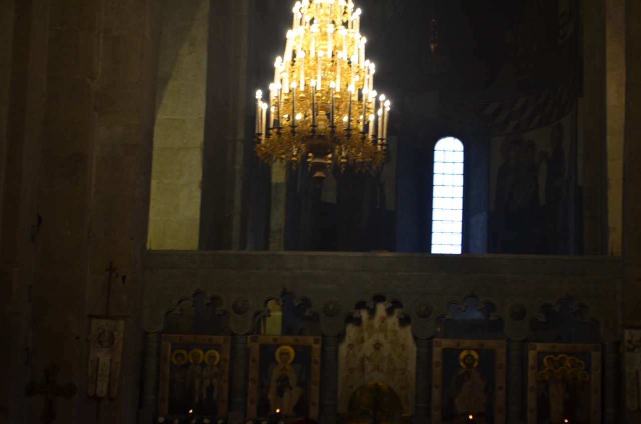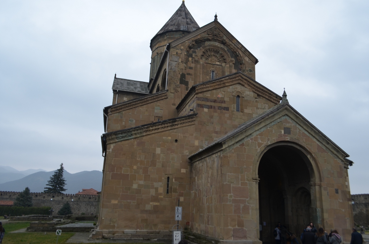 トビリシから日帰りのバス旅行で訪れました、ムツヘタというのは人口七千人の小村だと車内の話で聞いてきました。しかしながら、この大聖堂を中心として発展してきた門前町のようでした。バス駐車場から大聖堂までの参道に飲食店や土産物屋がずらりと並んでいて、賑やかでした。