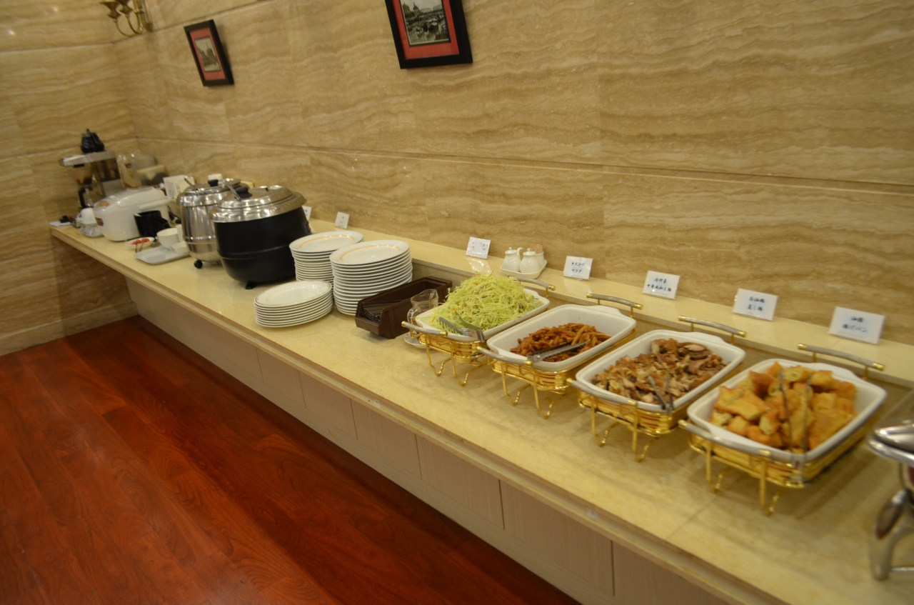後楽賓館という宿の地下にあります。朝食で利用しました。朝から中華料理でした。副菜の種類はそれほど多くないのですが、お粥があるのが中華らしいところです。勿論、白ご飯もあります。副菜の種類が少ないので、食べ過ぎを防ぐことができます。