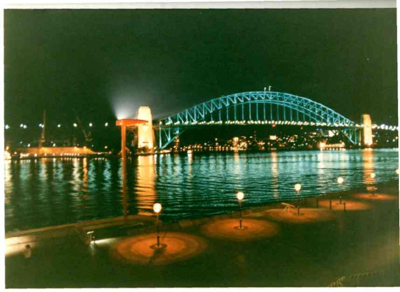 歌劇場と隣合わせており、共に港湾都市シドニーの中心と言えるでしょう。橋を歩いて渡ることもできますが、少し怖いかもしれません。夜は照明で夜空に浮かび上がっています。シドニー湾を渡る船からもよく見えます。