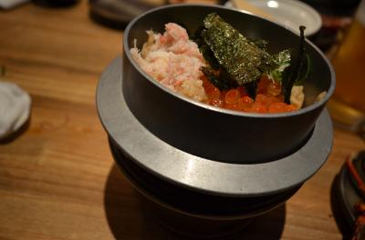 阪急三の宮駅の北側、生田神社に近い飲食店街の一画にあります。一帯は中華料理を始めとして各国料理や居酒屋さんが軒を連ねる中にあって、お任せの料理で食材の豪華さで目を引きます。伊勢海老の半身を豪快に焼いたのやら、お終いのご飯にイクラを載せた炊き込みやら盛り沢山でした。