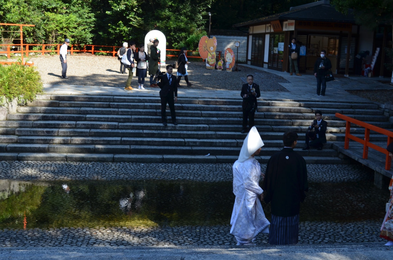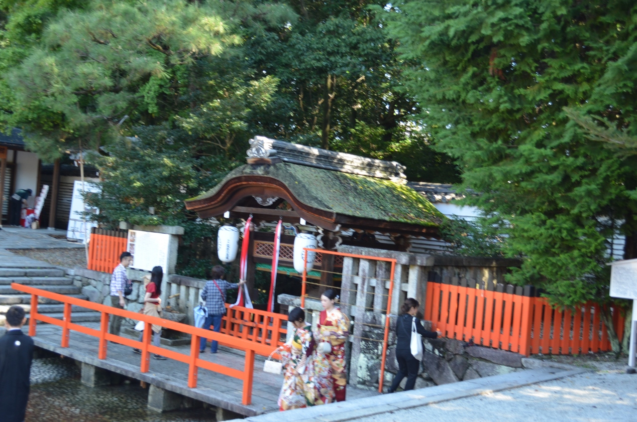 下鴨神社の境内に、小さな池があります。その池に架かっている橋があります。また、池の畔には水占いのお神籤もあります。歴史の古い神社だけに、独特の建物が多いように思います。本殿は干支ごとにお詣りする場所も分かれています。