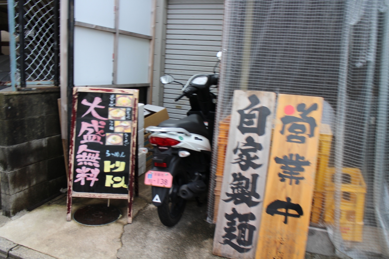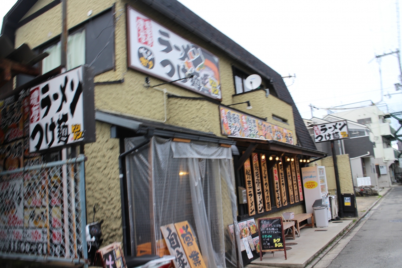 京阪電車の深草駅を龍大方面に降りると、幟が目に入ります。それを目印に道を曲がって、すぐです。場所柄、学生が多いです。食券を買います。店名は片仮名で書いてありますが、食券を買いますというのが、あっさりしていていけます。同じ値段で麺を大盛りにしてもらえます。
